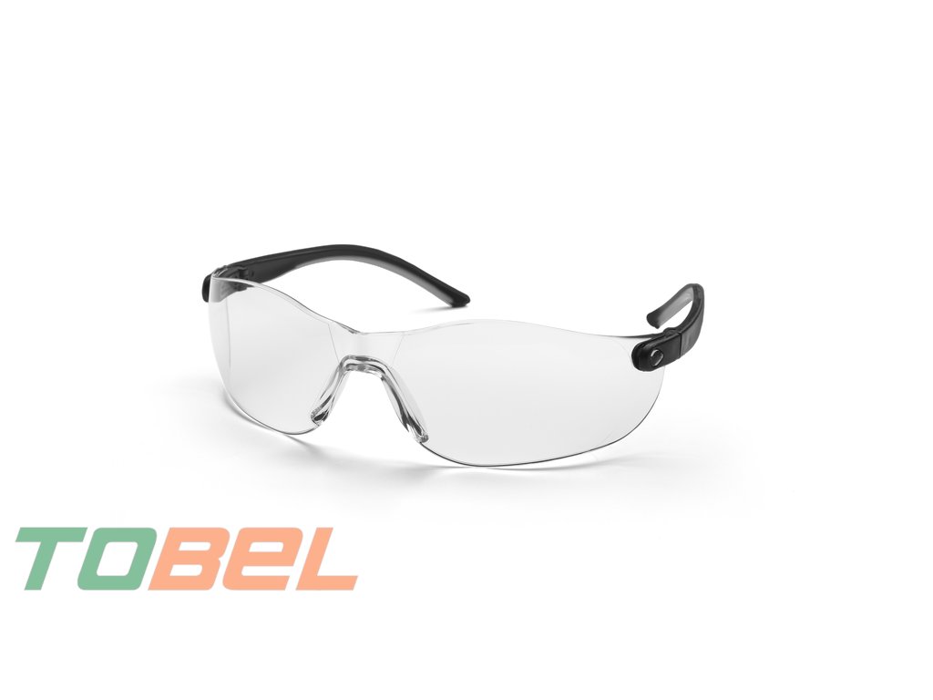 Ochranné okuliare s čírymi sklami, odolnými proti poškriabaniu, s predĺžiteľnými obrúčkami. Spĺňajú požiadavky EN 166, ANSI Z87+.