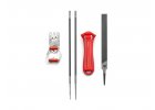 Patentovaný systém upevnenia pilníkov. Vhodný pre okrúhle pilníky 4,0-4,5 mm a ploché pilníky 6" a 8". vodítka pre 25° a 30° zabezpečujú správny uhol ostrenia.
